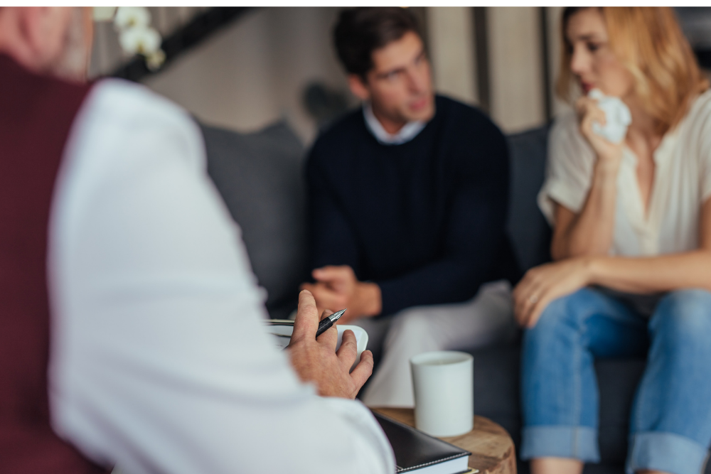 Couple getting marriage help in counseling.
